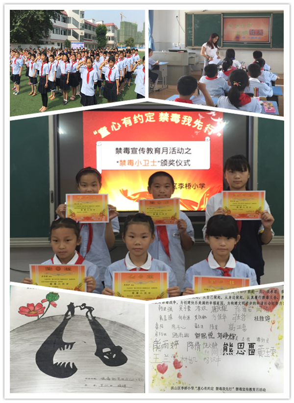 为纪念“6.26”国际禁毒日,进一步加大全校禁毒宣传教育力度,努力增强全校师生的拒毒防毒意识、提高拒毒防毒能力,结合《市教育局、市禁毒办关于印发2016年全市中小学禁毒宣传教育月活动方案的通知》、区局相关文件精神及本校实际情况,洪山区李桥小学组织开展了“童心有约定 禁毒我先行”禁毒宣传教育月活动。