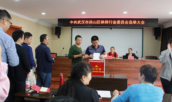 首届中共武汉市洪山区律师行业委员会选举大会在紧张、有序的氛围拉开了序幕,严格按照工作程序和选举办法,经过公正、透明的无记名投票,从8名候选人中选举产生了7名中共武汉市洪山区律师行业委员会成员。