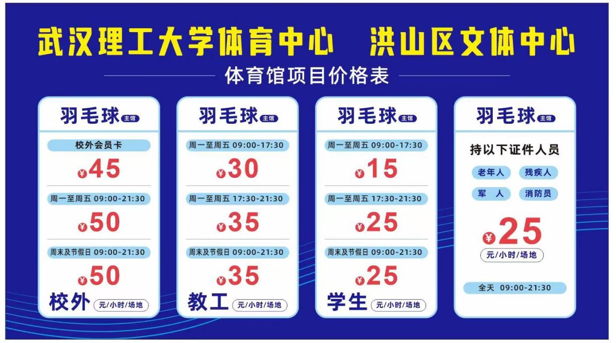 3.8月8日为全民健身日主馆羽毛球场地全天免费开放。