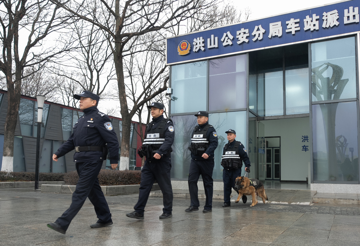 作为武汉面积最大、常住人口最多的中心城区,叠加春节长假与春运高峰,安保防控压力突出。洪山警方构建“车巡、步巡、视频巡、无人机巡”立体化巡防体系,将警力精准投放到商圈、交通枢纽、民生保供点位等人员密集区域,实现“警车常巡、警灯常亮、警察常在”,全面筑牢节日治安防线,第一时间响应群众求助。