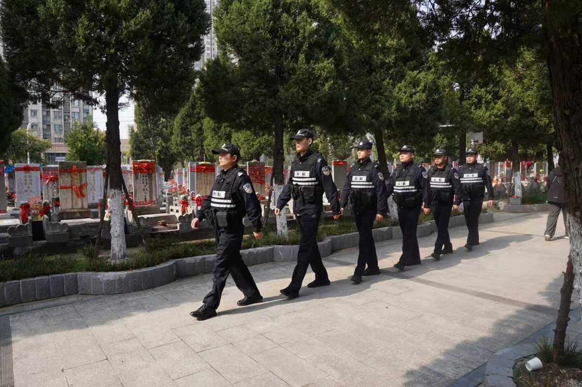 卓刀泉派出所抽调8名警力驻守武昌殡仪馆,分工明晰、履职到位。4名民警设立现场民警服务站,受理群众报警求助、处置民事纠纷。3月28日上午,售卖祭祀物品的王女士与保安因货品摆放位置发生争执,双方情绪激动引发群众围观,服务站民警田民主、陈大为接到求助后迅速到场,先安抚双方情绪,再结合文明祭扫要求耐心调解,快速平息纠纷。