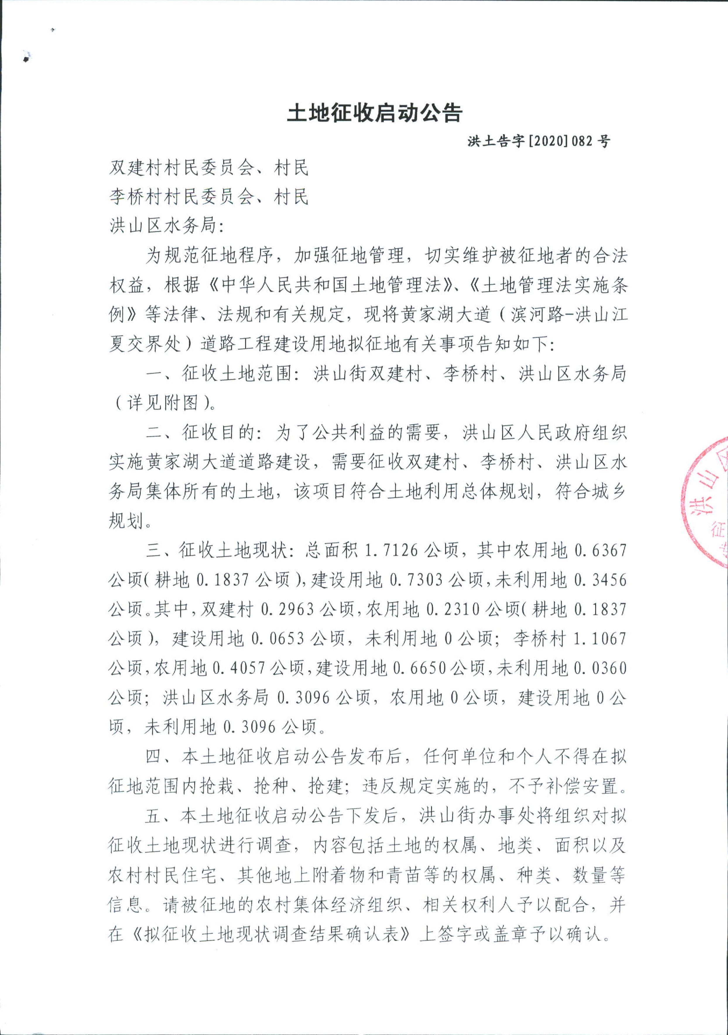 名 称:洪土告字(2020)082号 土地征收启动公告