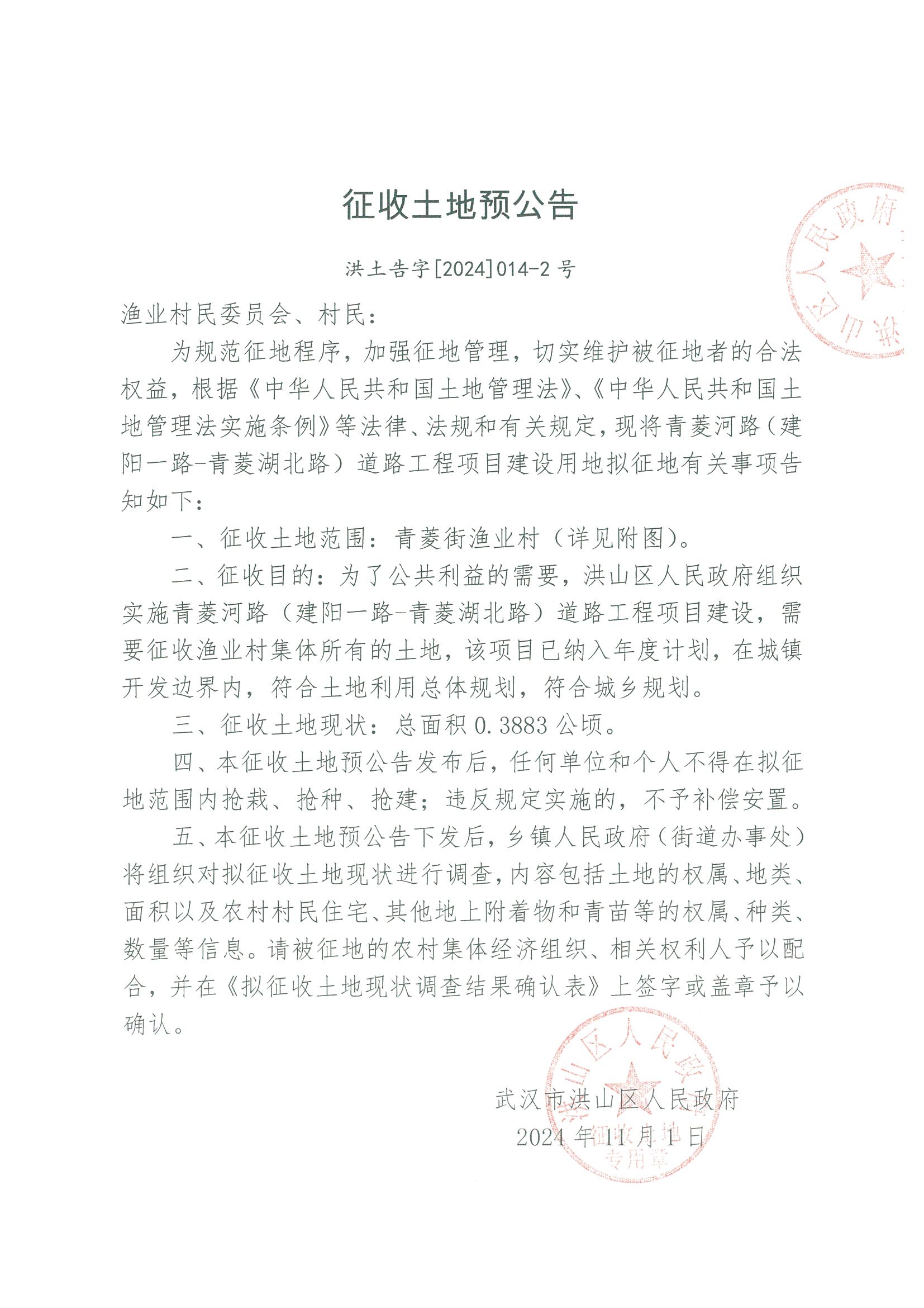 名 称:洪土告字【2024】第014-2号土地征收预公告