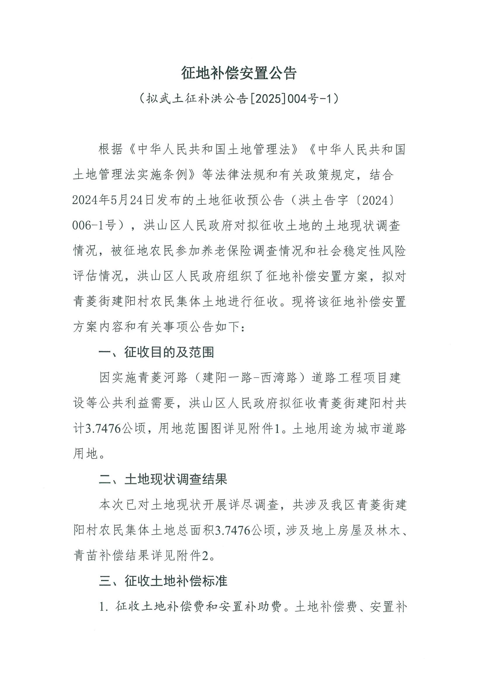 名 称:拟武土征补洪公告[2025]004号-1征地补偿安置方案公告