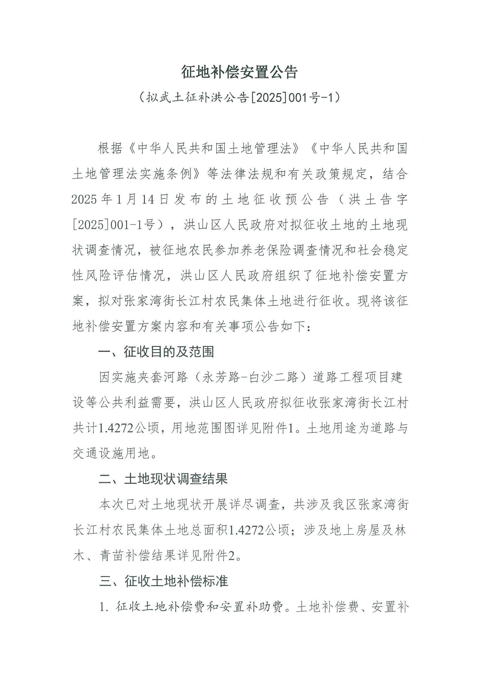 名 称:拟武土征补洪公告[2025]001号-1征地补偿安置方案公告