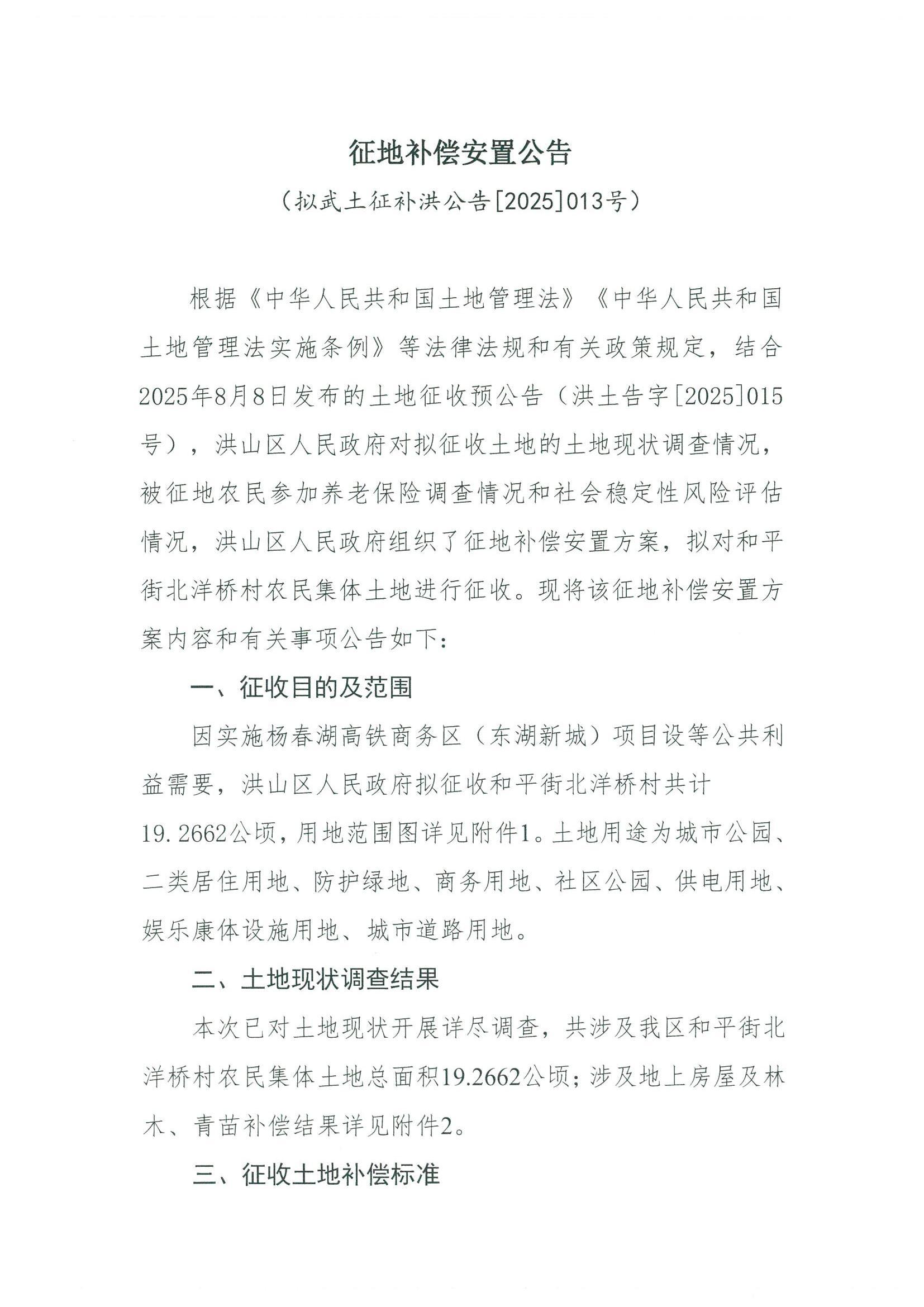 名 称:拟武土征补洪公告[2025]013号征地补偿安置方案公告