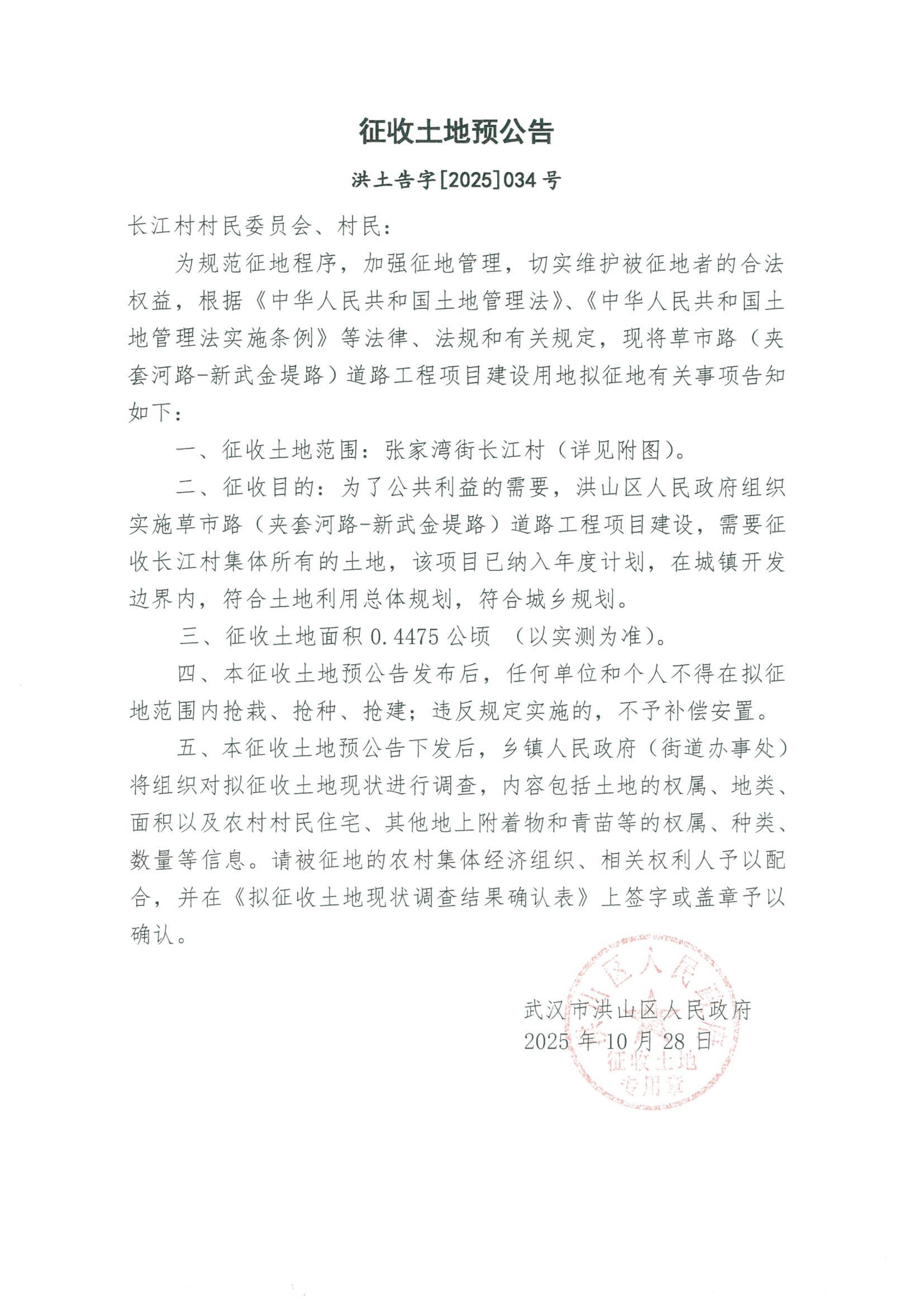 名 称:洪土告字【2025】034号土地征收预公告