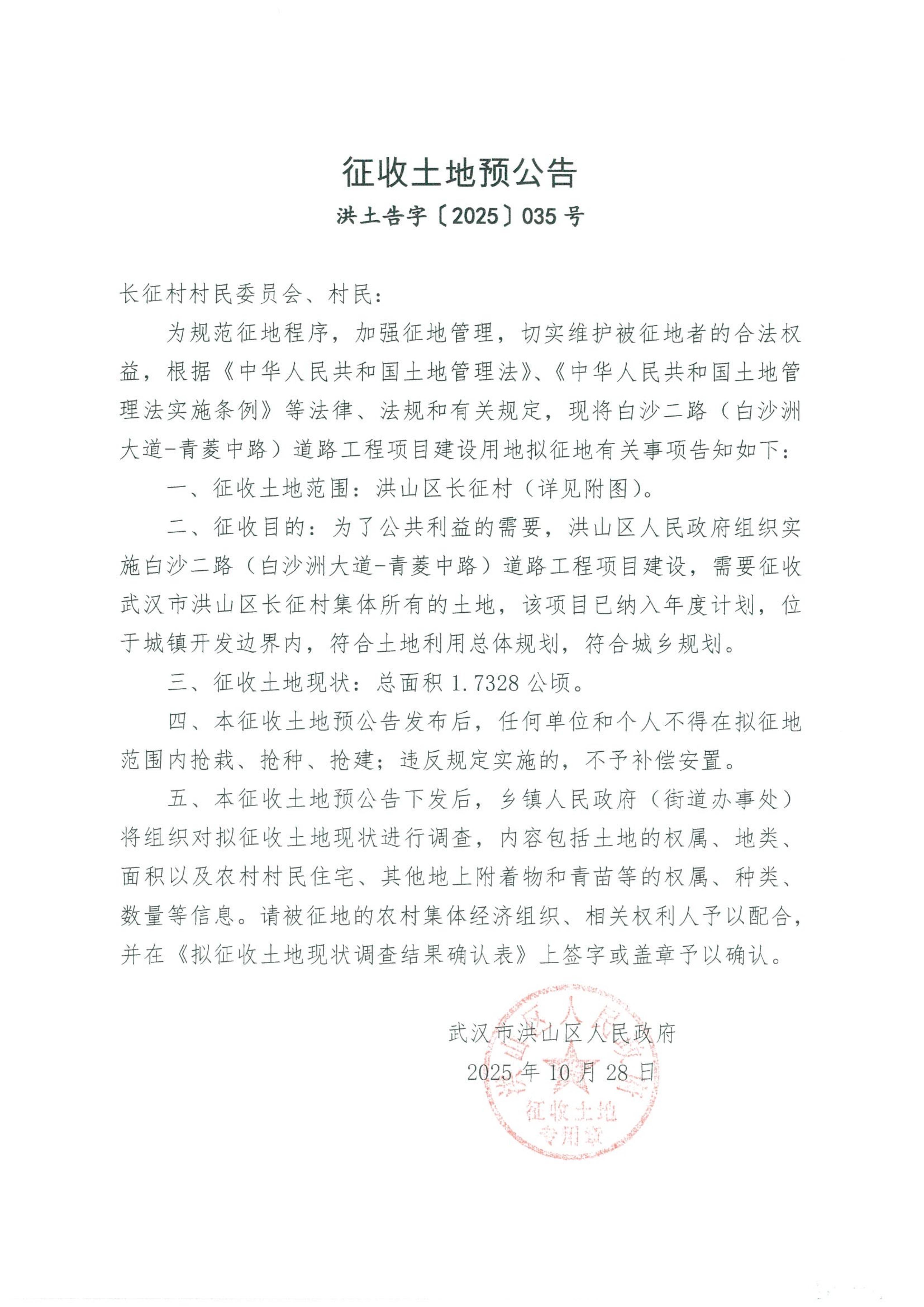 名 称:洪土告字【2025】035号土地征收预公告