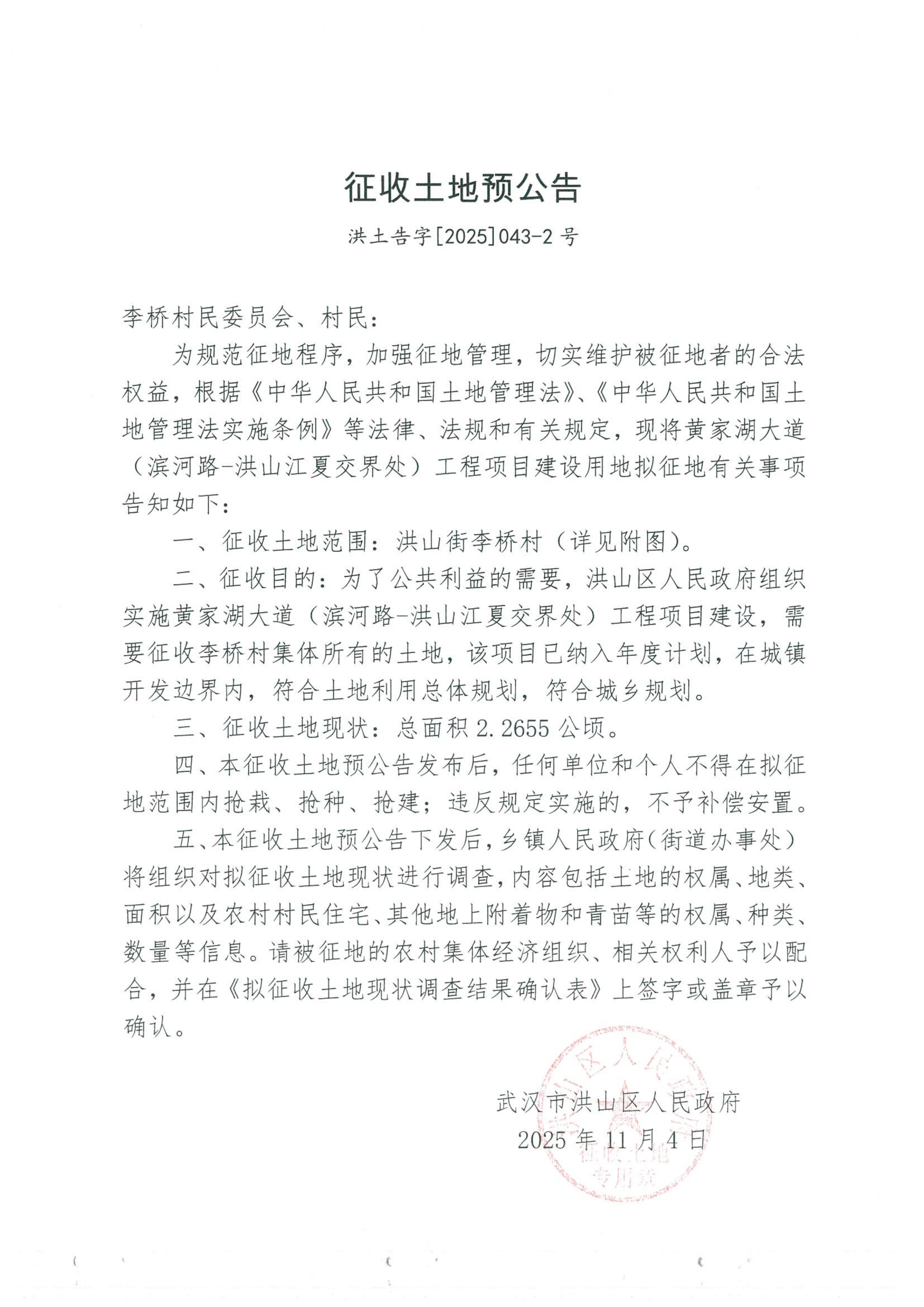 名 称:洪土告字【2025】043-2号土地征收预公告