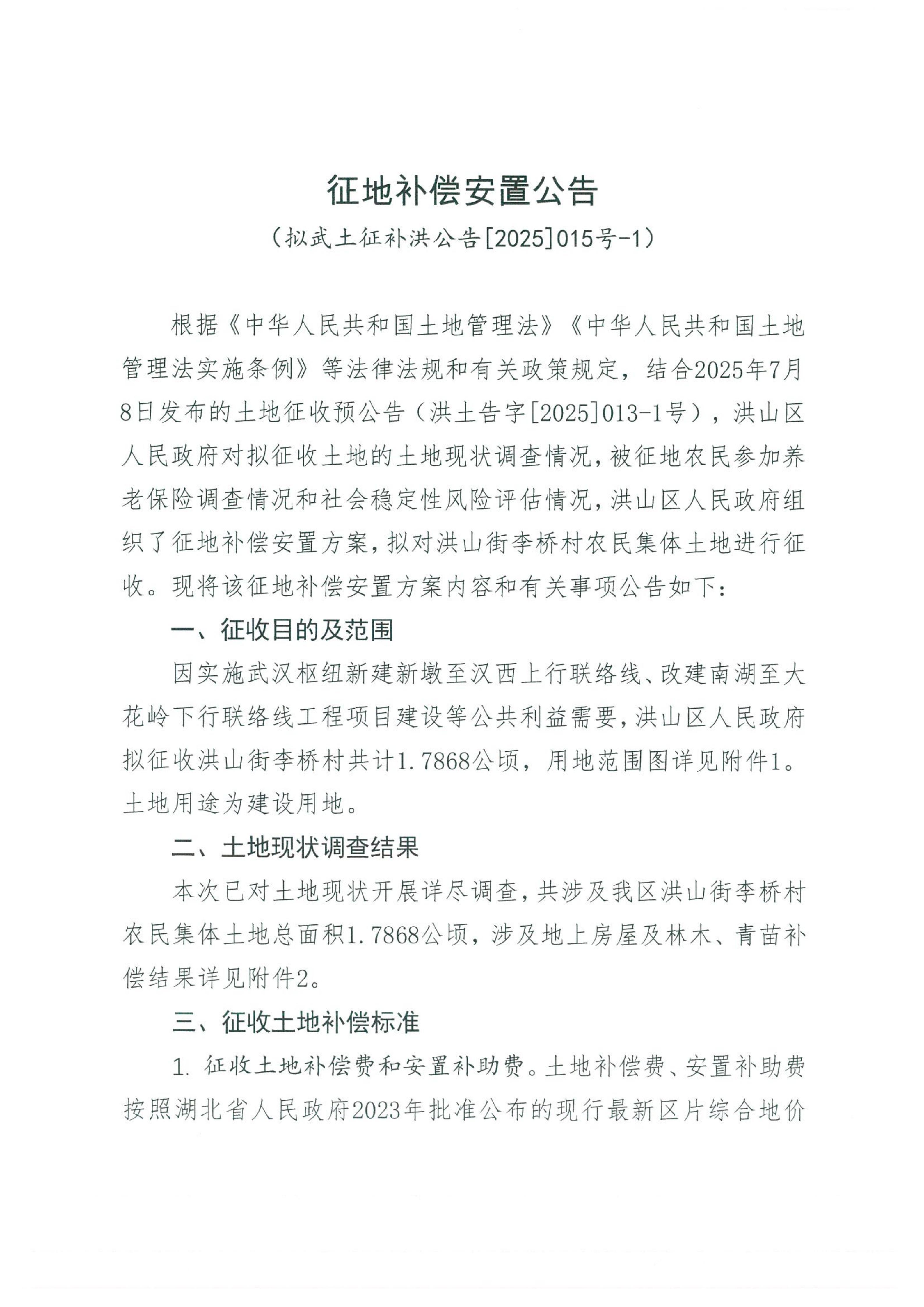 名 称:拟武土征补洪公告[2025]015号-1征地补偿安置方案公告