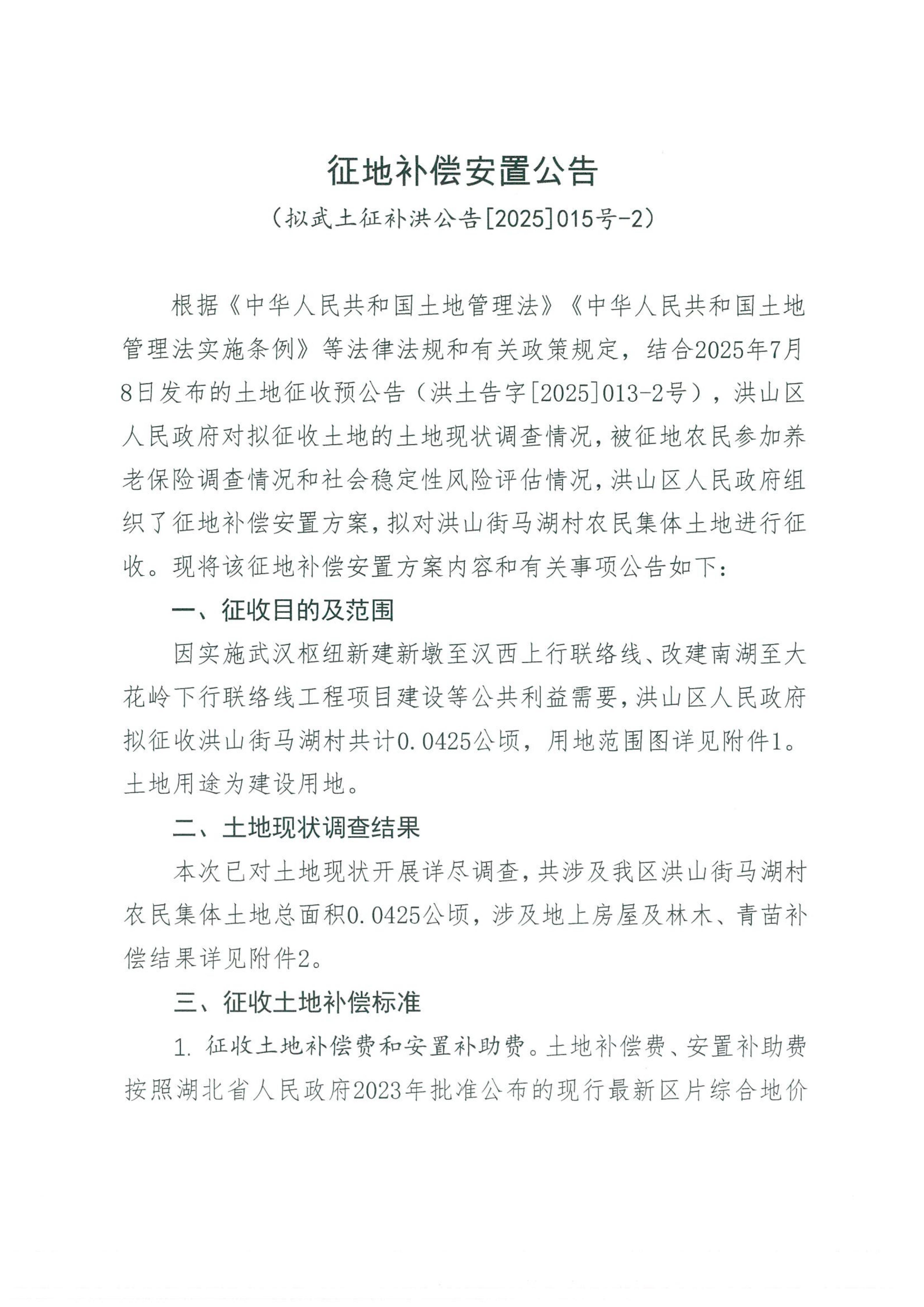 名 称:拟武土征补洪公告[2025]015号-2征地补偿安置方案公告