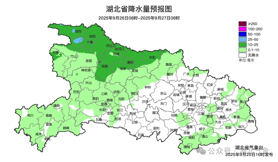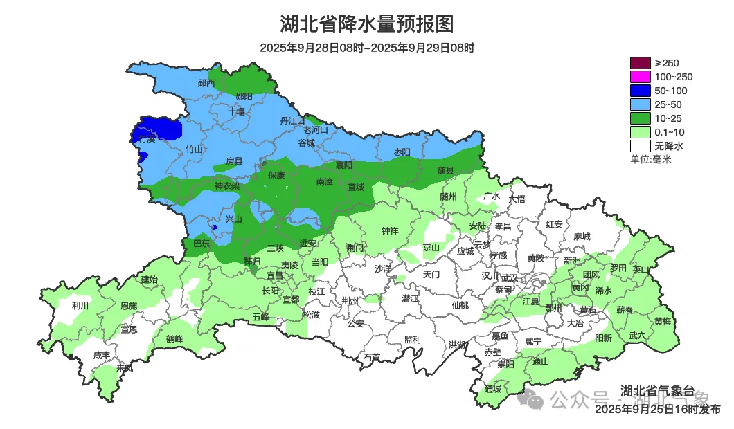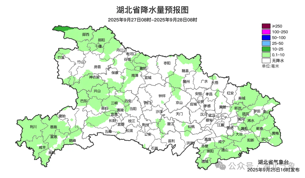 预报来源:湖北省气象台2025年9月25日16时预报
