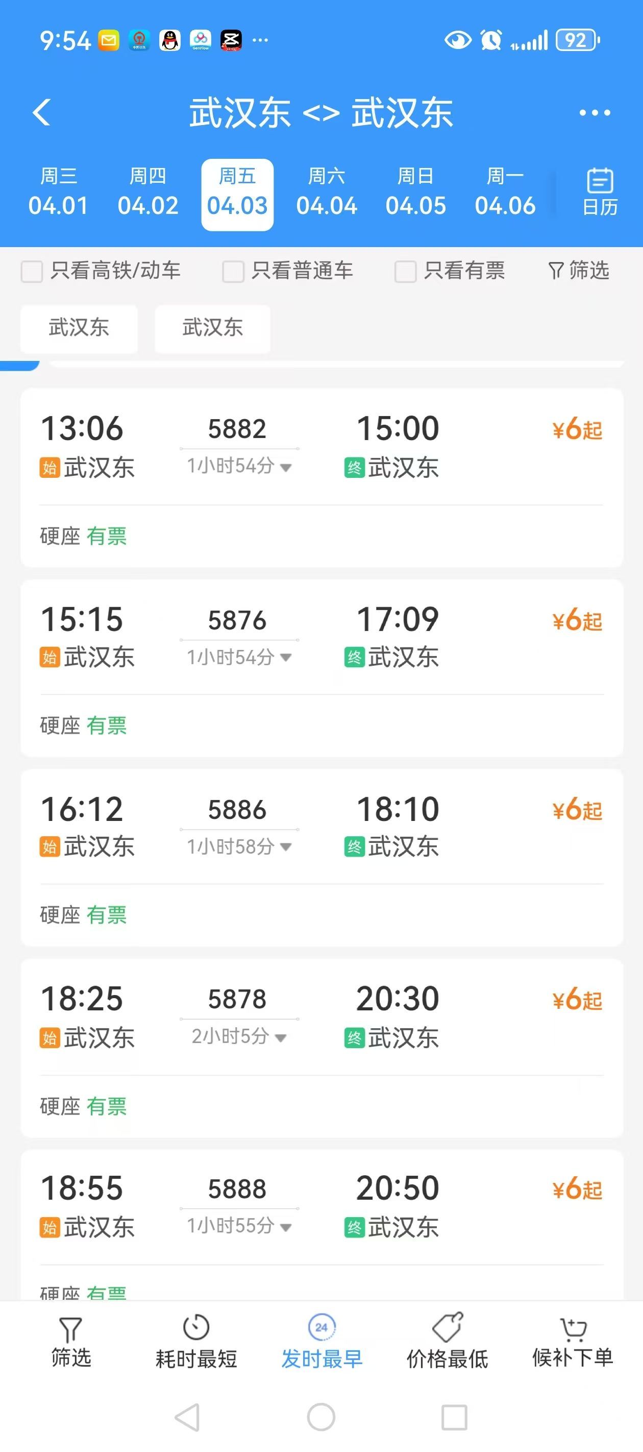 调整后“武汉东至武汉东” 普速环线列车已于3月27日开售,有需要的旅客可通过12306官方平台购票。据了解,除了“武汉东至武汉东”普速环线列车,还有“清明”小长假期间加开的武昌至武汉东的5881次、5871次,武汉东至武昌的5872次等多趟惠民列车,为旅客出行提供更多选择。