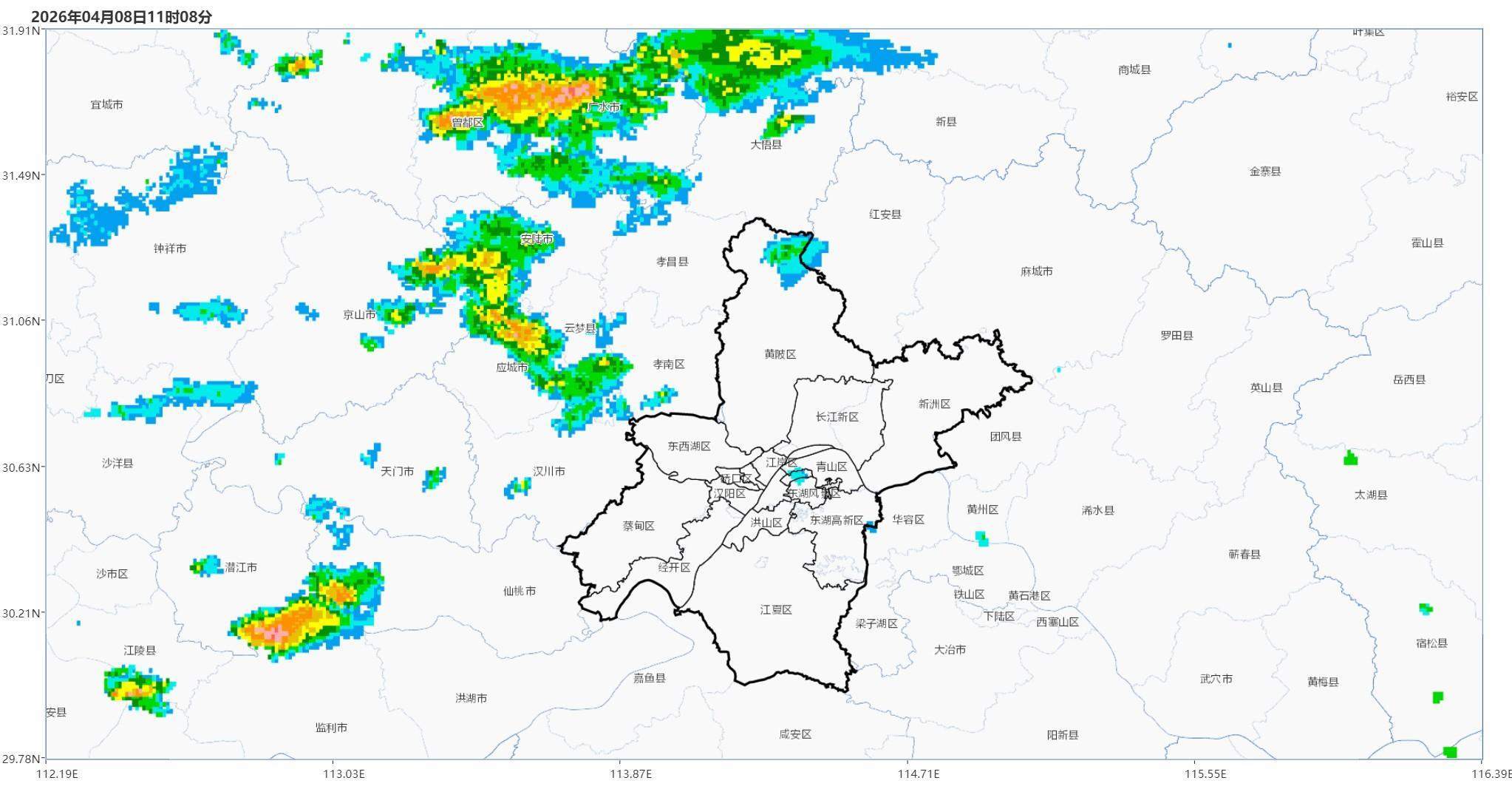 武汉市气象台4月8日11时发布3小时预报简讯: