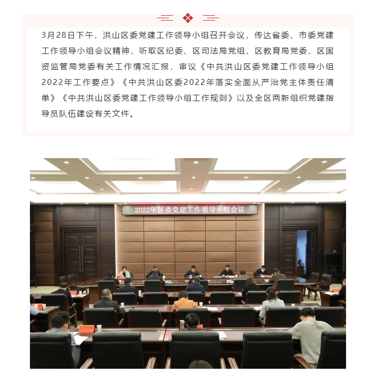 洪山区委部署2022年党建工作重点任务