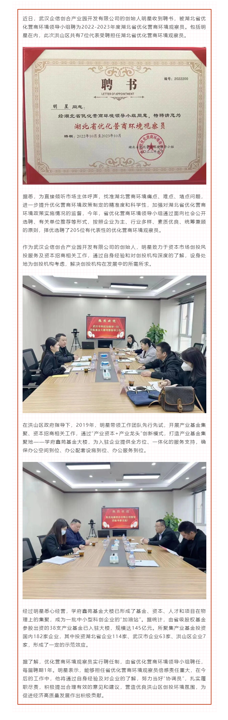 企信创合负责人明星受聘担任湖北省优化营商环境观察员
