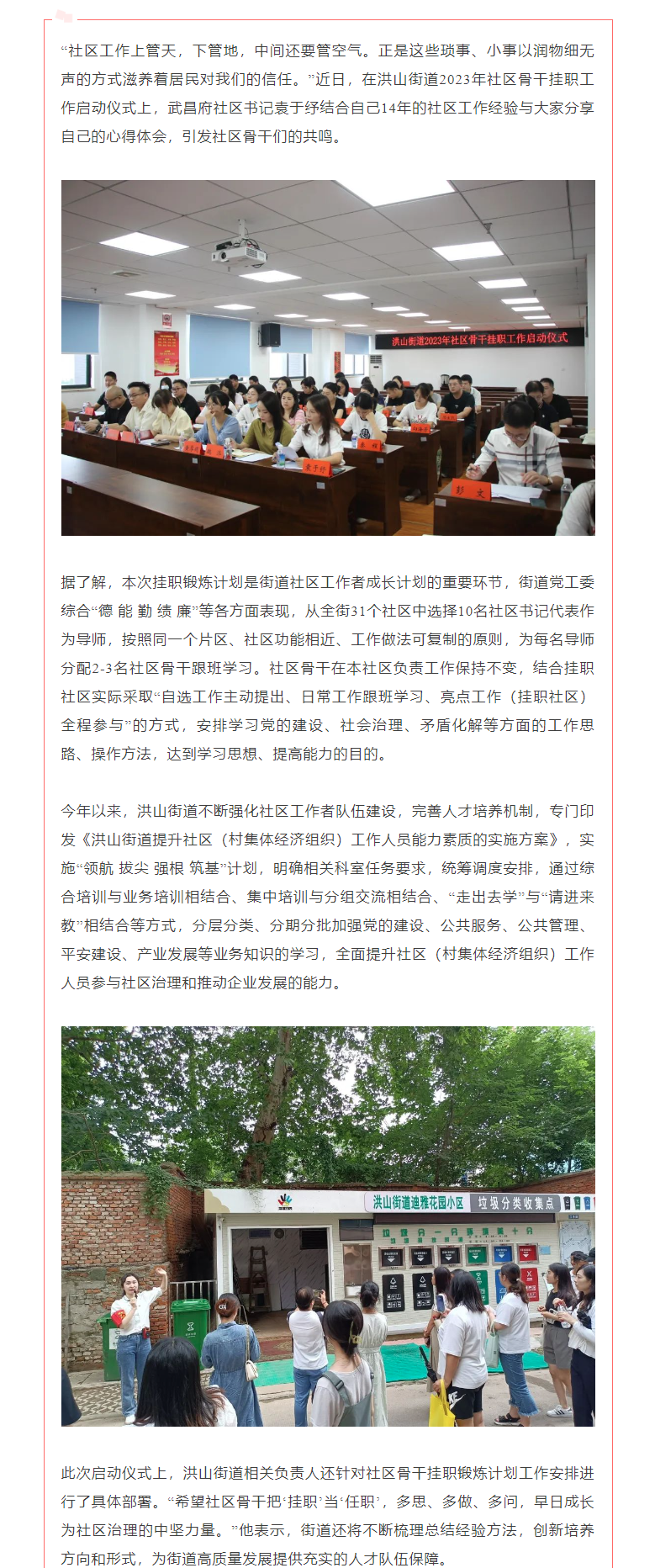 “践”入佳境 洪山街道启动社区骨干挂职锻炼计划