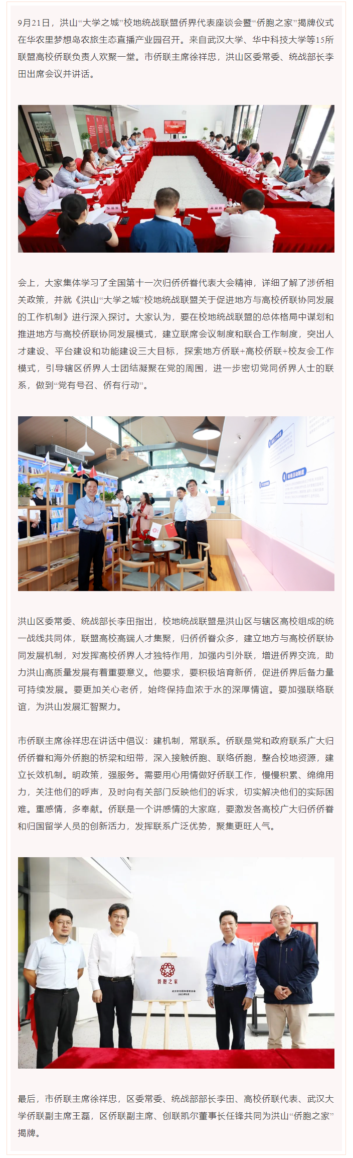 侨连高校共创未来 洪山“侨胞之家”揭牌