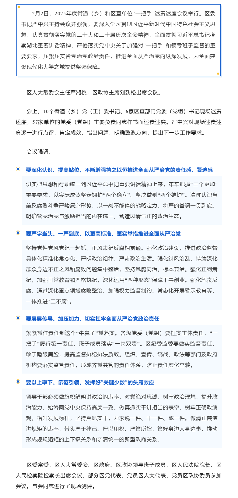 洪山区召开街道(乡)和区直单位“一把手”述责述廉会议