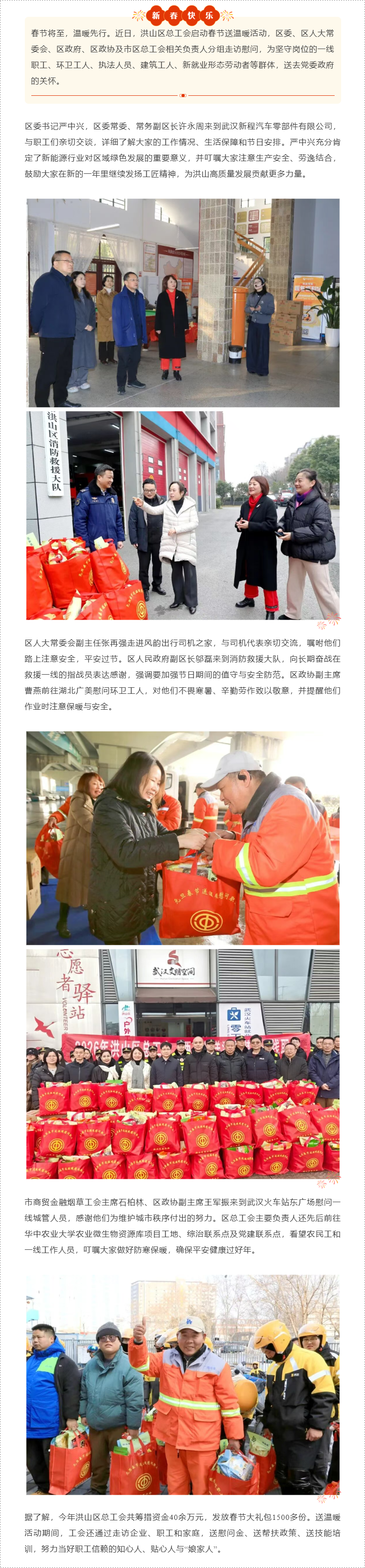 洪山区总工会情暖新春 千份礼包致敬一线奋斗者