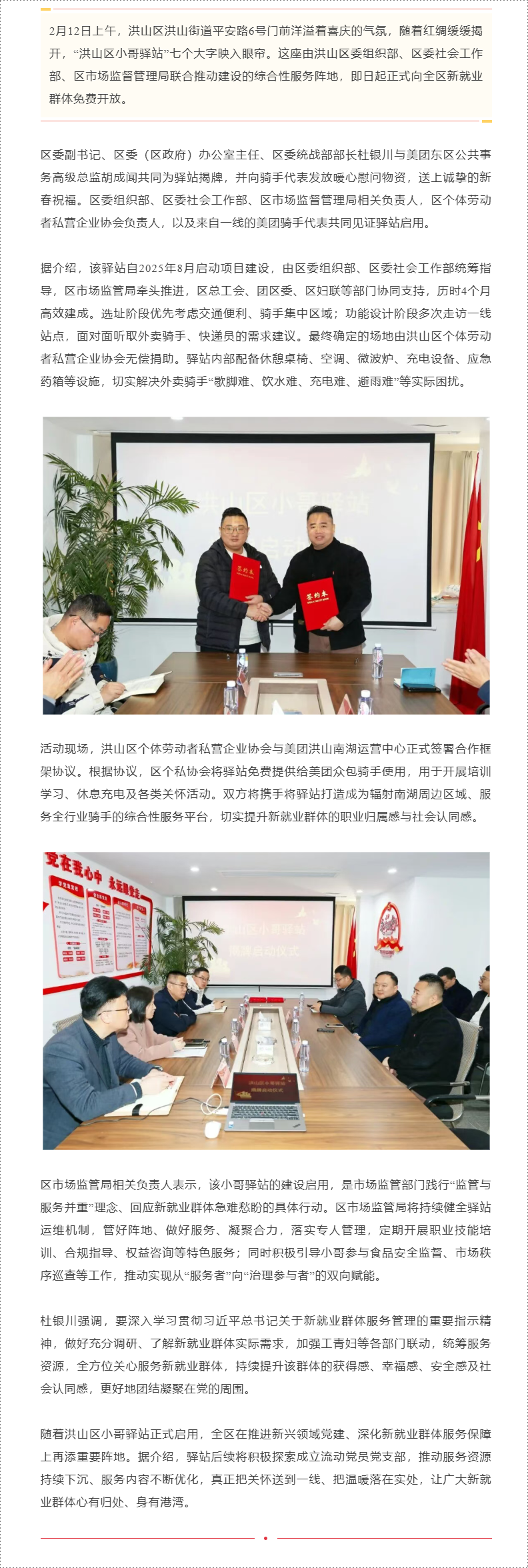 平安路上添暖意 洪山区小哥驿站正式揭牌启动
