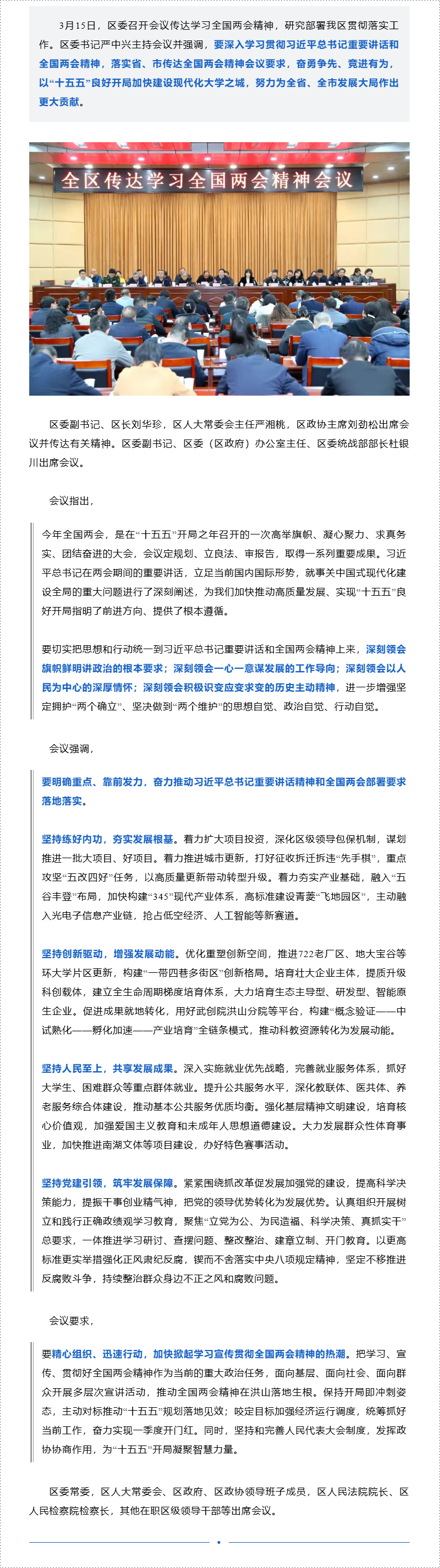 区委召开会议传达学习全国两会精神