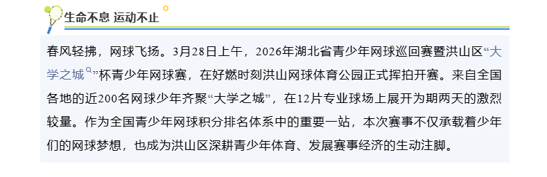 “洪动四季”燃动全城!湖北省2026青少年网球巡回赛在洪山挥拍