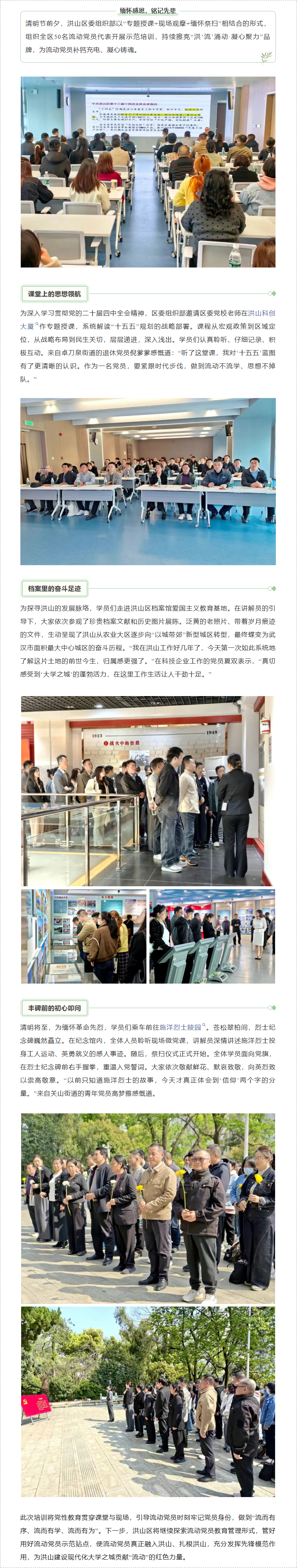 清明祭英烈,洪山50名流动党员上了一堂“行走的党课”