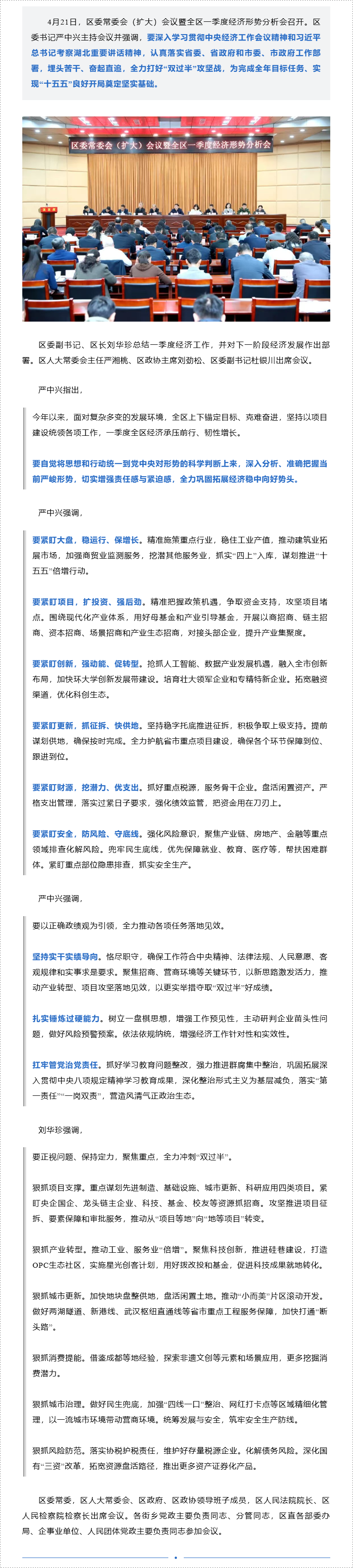 区委常委会(扩大)会议暨全区一季度经济形势分析会举行