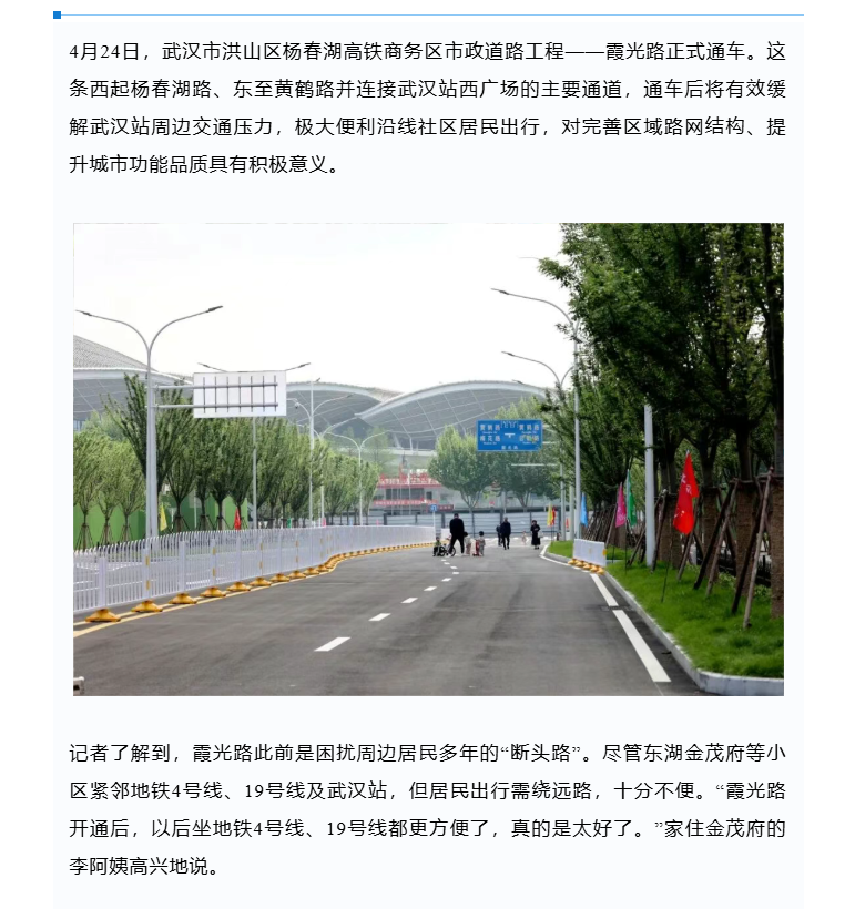 武汉站西广场旁,这条霞光路正式通车!