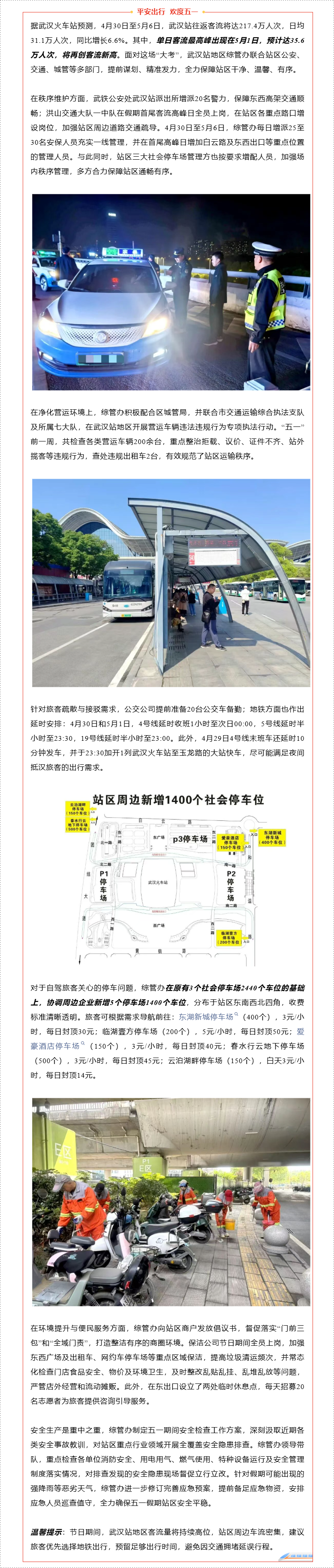 预计接送旅客217万人次 武汉站地区综管办全力护航五一长假