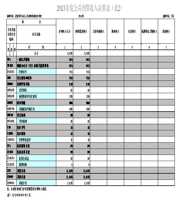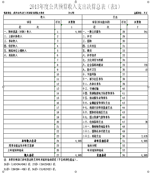 二、武汉市洪山区人民政府珞南街办事处2013年度公共预算收入支出决算总表