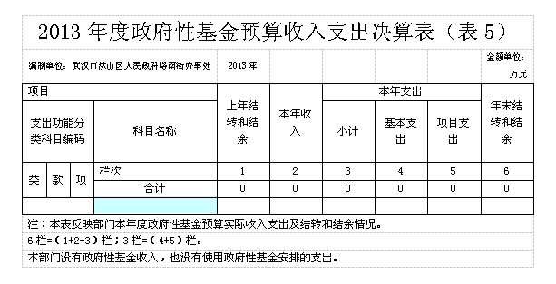 六、武汉市洪山区人民政府珞南街办事处2013年度政府性基金预算收入支出决算表