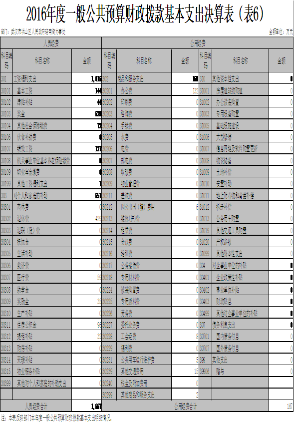 六、一般公共预算财政拨款基本支出决算表(表6)