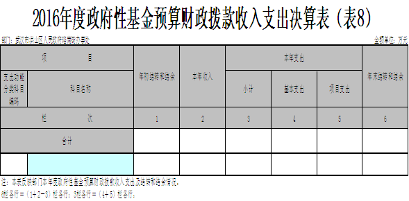 八、政府性基金预算财政拨款收入支出决算表(表8)