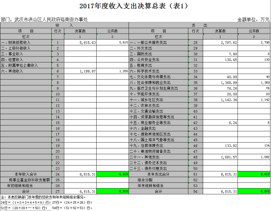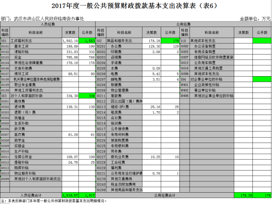 名 称:2017年度洪山区人民政府珞南街办事处部门决算 |