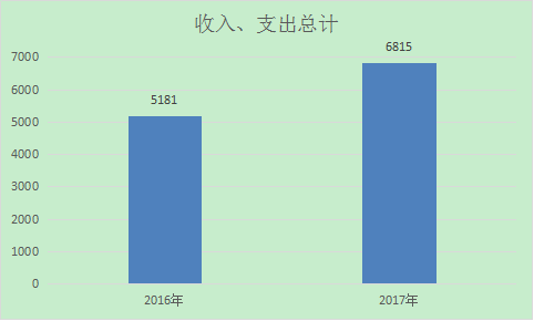 2017年度收、支总计6,815万元。与2016年相比,收、支总计各增加 1,634万元,增长31.54%,主要原因是增加公共安全支出、社会保障和就业支出、城乡社区支出、商业服务业支出及其他支出。