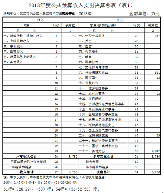 名 称:武汉市洪山区人民政府卓刀泉街办事处2013年度部门决算 |