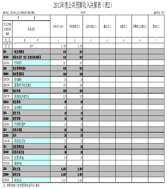 二、武汉市洪山区人民政府卓刀泉街办事处2013年度公共预算收入支出决算总表