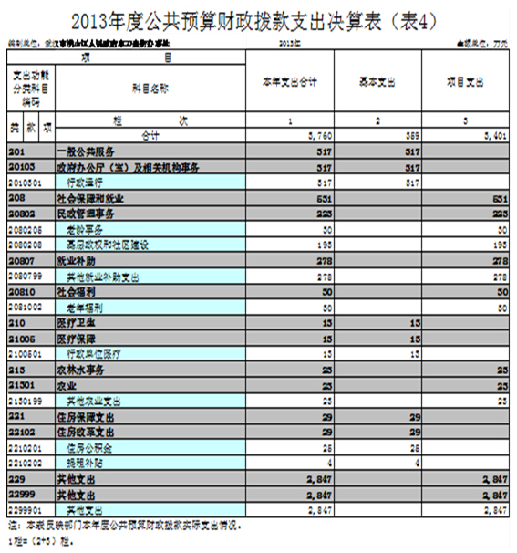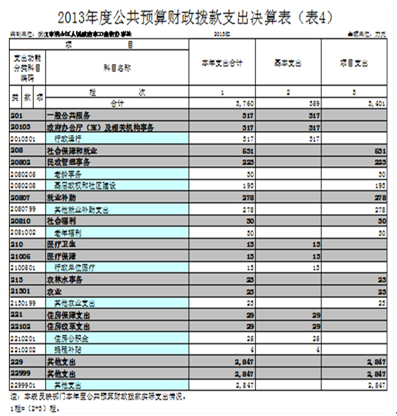 四、武汉市洪山区人民政府卓刀泉街办事处2013年度公共预算支出决算表