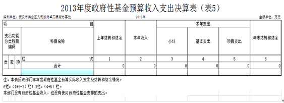六、武汉市洪山区人民政府卓刀泉街办事处2013年度政府性基金预算收入支出决算表