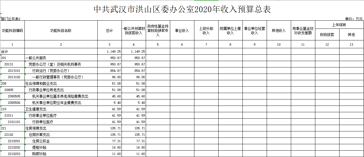 名 称:中共武汉市洪山区委办公室2020年收入预算总表