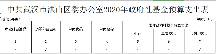 名 称:中共武汉市洪山区委办公室2020年政府性基金预算支出表