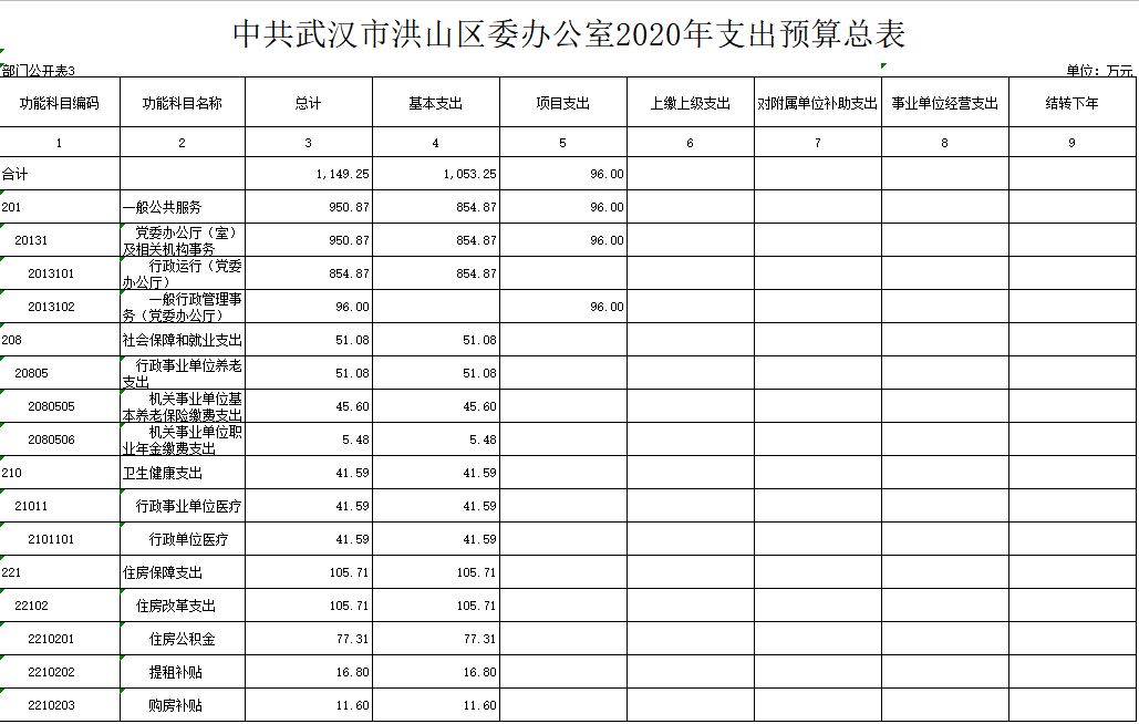 名 称:中共武汉市洪山区委办公室2020年支出预算总表