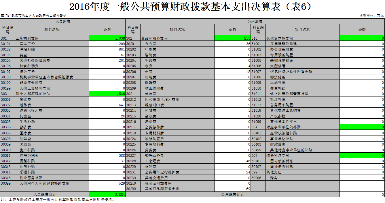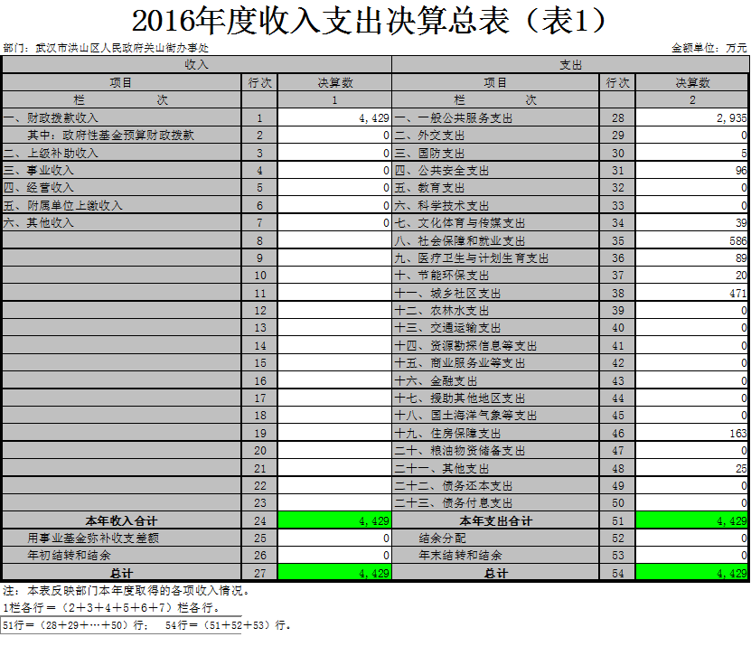 第二部分 武汉市洪山区人民政府关山街办事处2016年度部门决算表