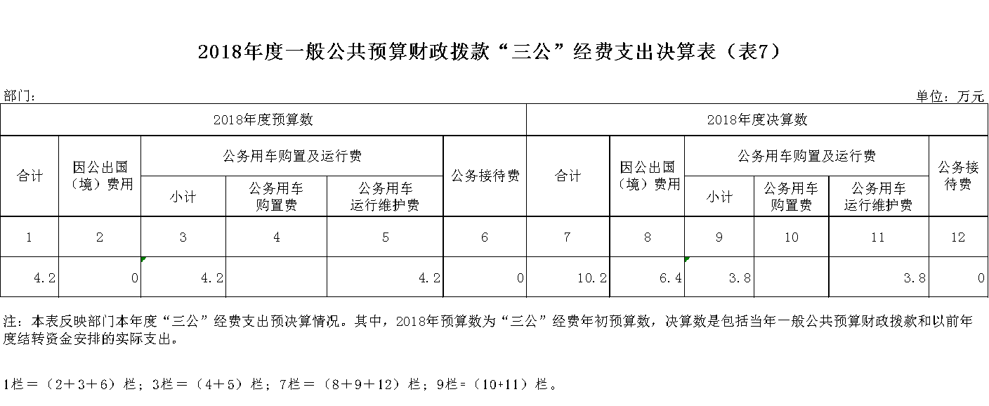 七、表7 一般公共预算财政拨款“三公”经费支出决算表
