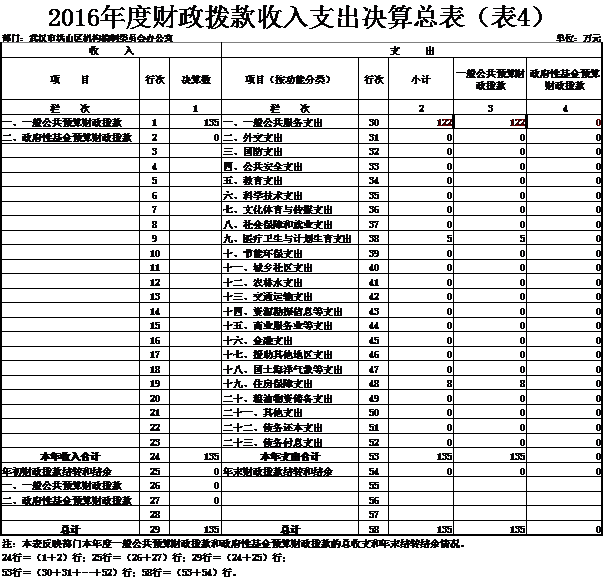 四、财政拨款收入支出决算总表(表4)