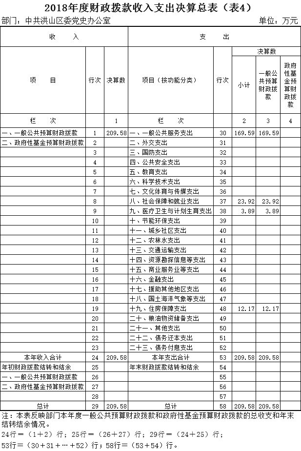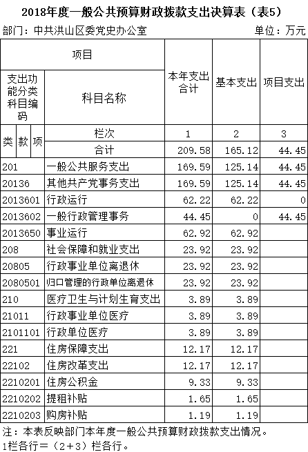 名 称:武汉市洪山区委党史办公室2018年度部门决算 |