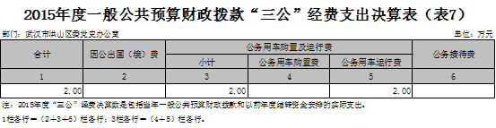 2015年度“三公”经费财政拨款支出决算数比2014年减少2万元,降低50%,其中:没有因公出国(境)支出;公务用车购置及运行费支出决算增加减少2万元,增降低50%;没有公务接待支出。公务用车购置及运行费支出决算减少的主要原因是加强车辆运行管理,并按照要求三公经费每年按百分之十减少。