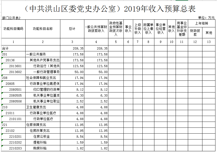 名 称:(中共洪山区委党史办公室)2019年收入预算总表